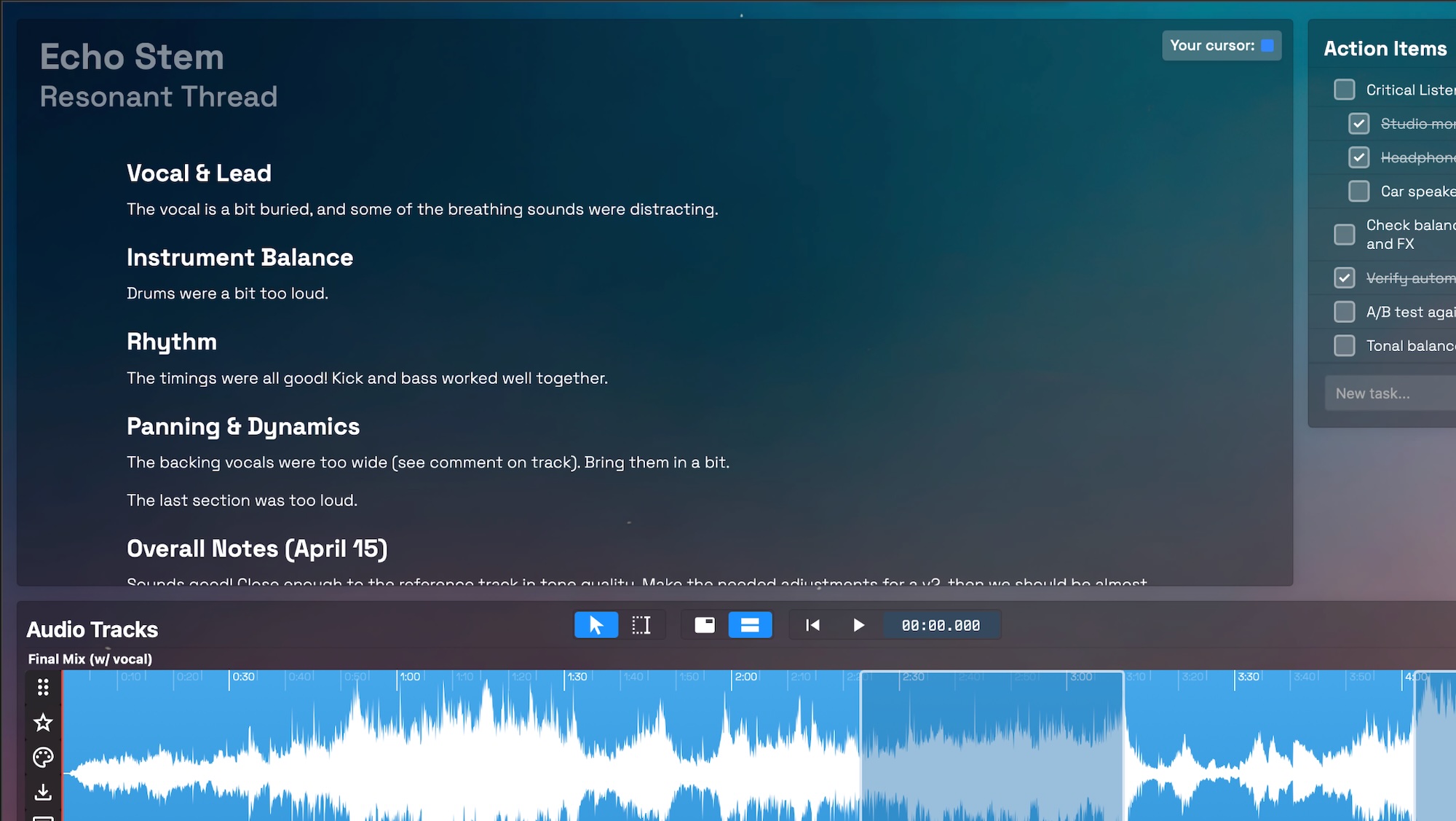 Forget email chaos; with on-track mix feedback and seamless A/B tests, you’ll make sharper revisions and better mixes.