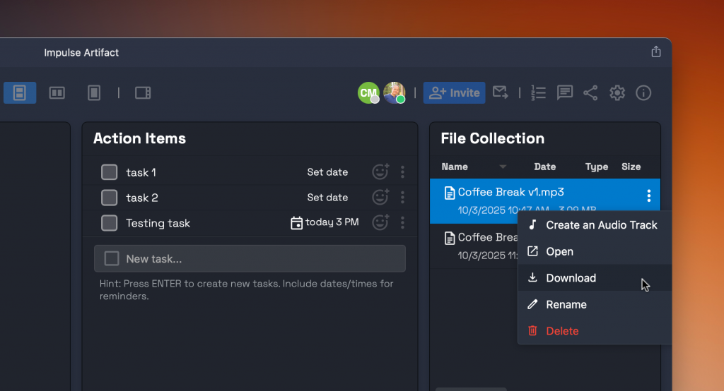 • Right-Click Menu in the Files Pod — Manage uploads, rename, or remove files instantly without leaving the track editor.