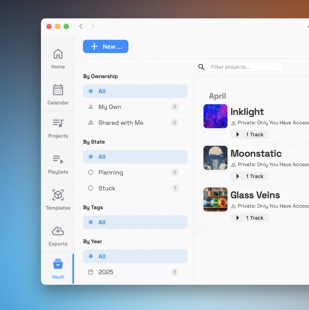 Mixing and mastering sessions can pile up quickly. To help you stay focused, you can now archive completed projects to keep your main dashboard clutter-free. Archived sessions are stored in the new Vault, where you can revisit or restore them anytime.