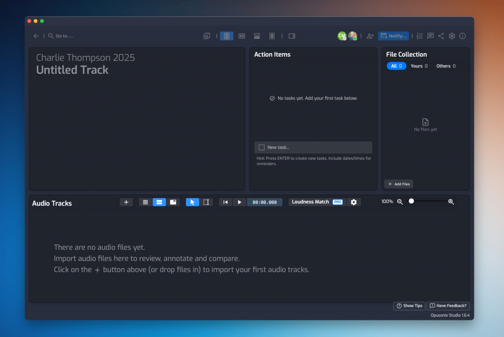 A Track Project in Opusonix acts as the home base for a mix. Instead of assembling folders, documents, and email threads, you start with a single workspace where everything related to the track will live.